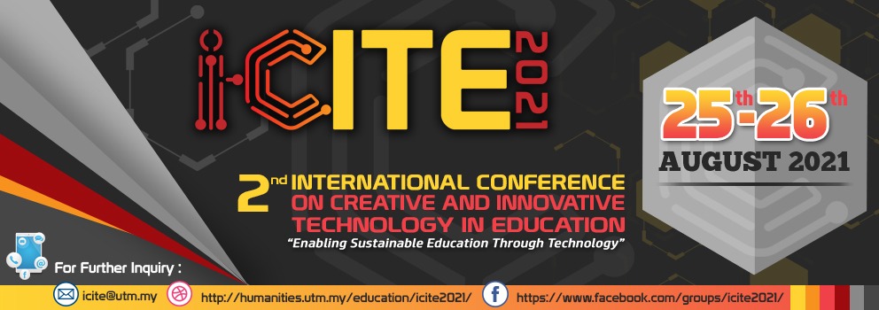 The School of Education, Faculty of Social Sciences and Humanities (FSSH), Universiti Teknologi Malaysia would like to extend our warmth welcome and further to invite you to participate in our ‘2nd International Conference on Creative and Innovative Technology in Education (i-CITE 2021)’.